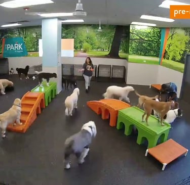 🏙️ Paws Playgrounds (Toronto, ON) – 10,000 sq ft of indoor + outdoor space, luxury cage-free suites, and even Zoom assessments before the first stay.