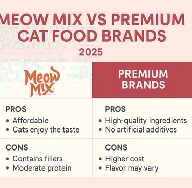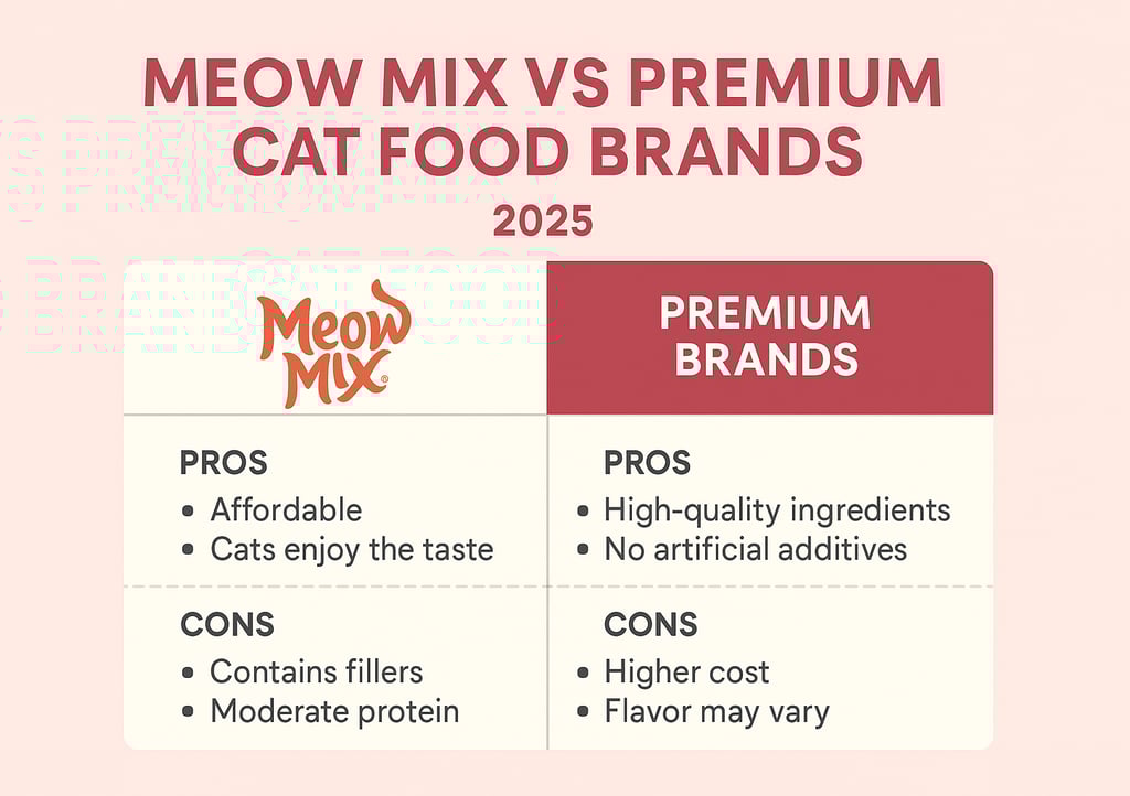 “Comparison of Meow Mix vs premium cat food brands in 2025 chart style”